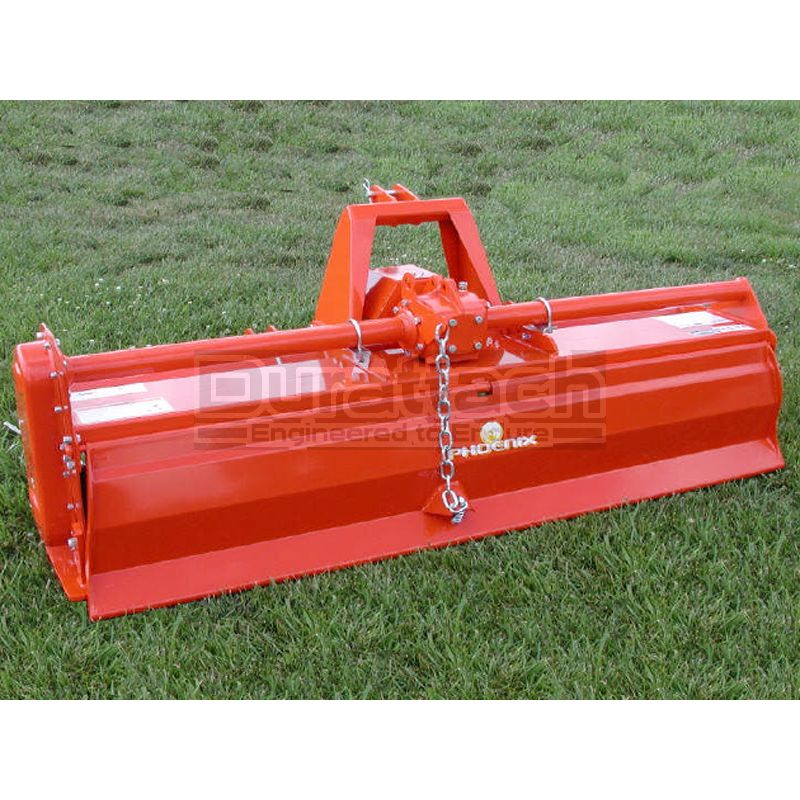 Phoenix tillers are top-quality. The T25 Series Heavy Duty Gear Drive Tillers feature an easy change 4 speed gearbox allowing you to set your tiller speed to match field conditions. The load bearing frame on which the gearbox and super heavy duty protective hood are mounted make this machine extremely sturdy for even the most demanding applications. All Phoenix line tillers are specially designed to reduce the possibility of clogging even in wet or sticky soil conditions. Six tines per flange, heavy duty series Series 8 PTO with standard 4 plate friction disc slip clutch, and adjustable lower and upper links are standard.