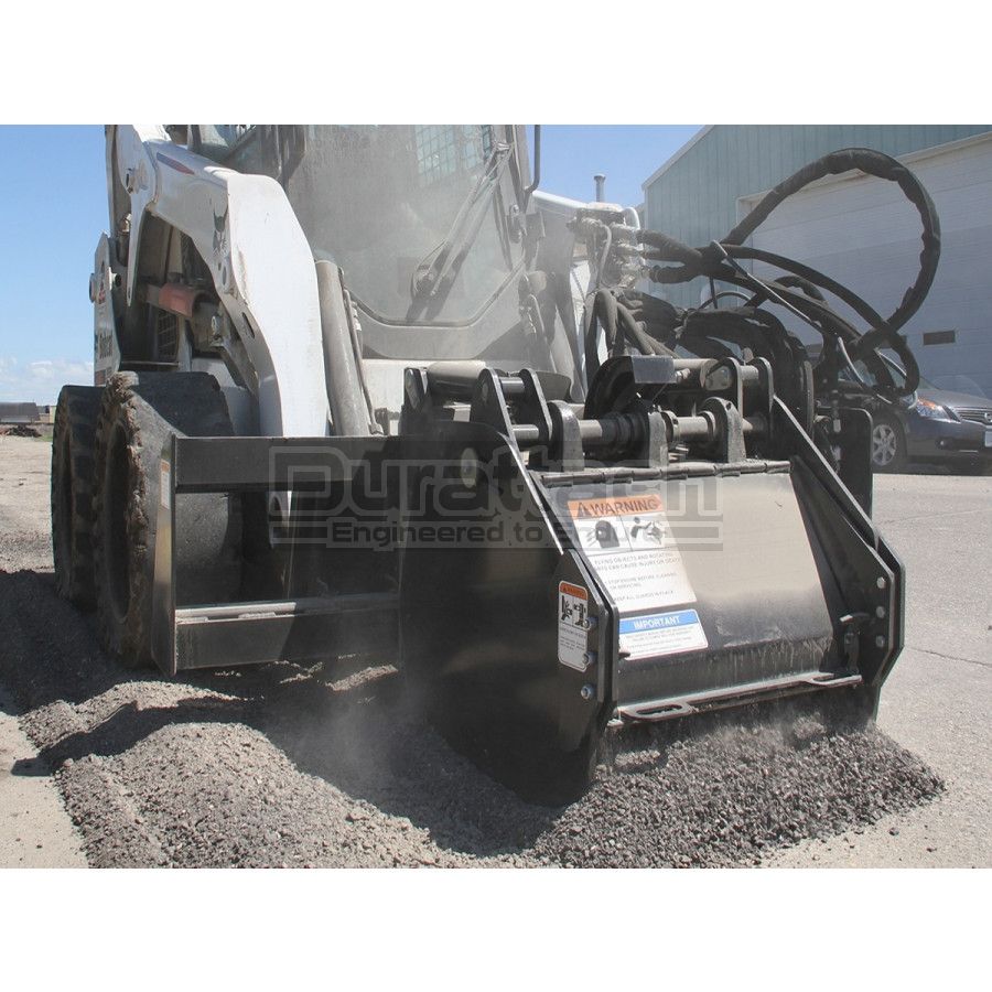 Highly versatile Cold Planers are adaptable to a wide variety of job environments including road repair, bridge deck repair, landscaping, municipal, shopping center and utility work. The Cold Planer is easy to maneuver around manhole and storm drains; excellent for bridge decks where heavier, dedicated planers are not allowed. Hydraulic side-shift and depth control allows skid steer operators to shift it up to 24” for maneuvering close to buildings and other obstacles from the comfort of your seat.