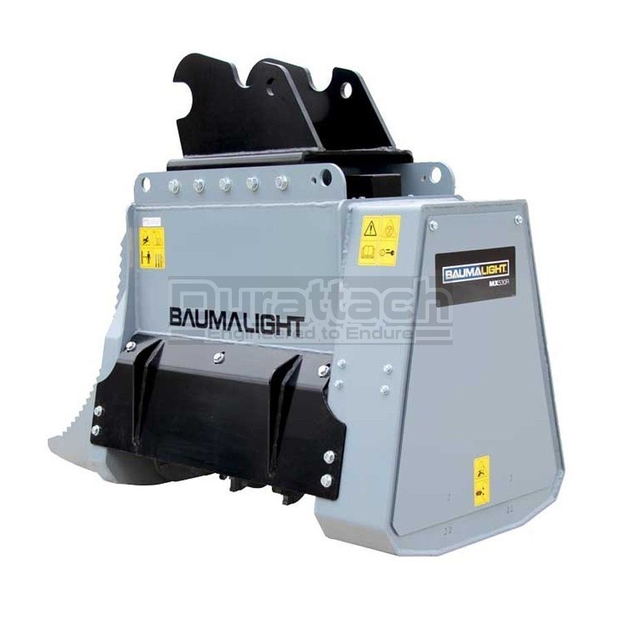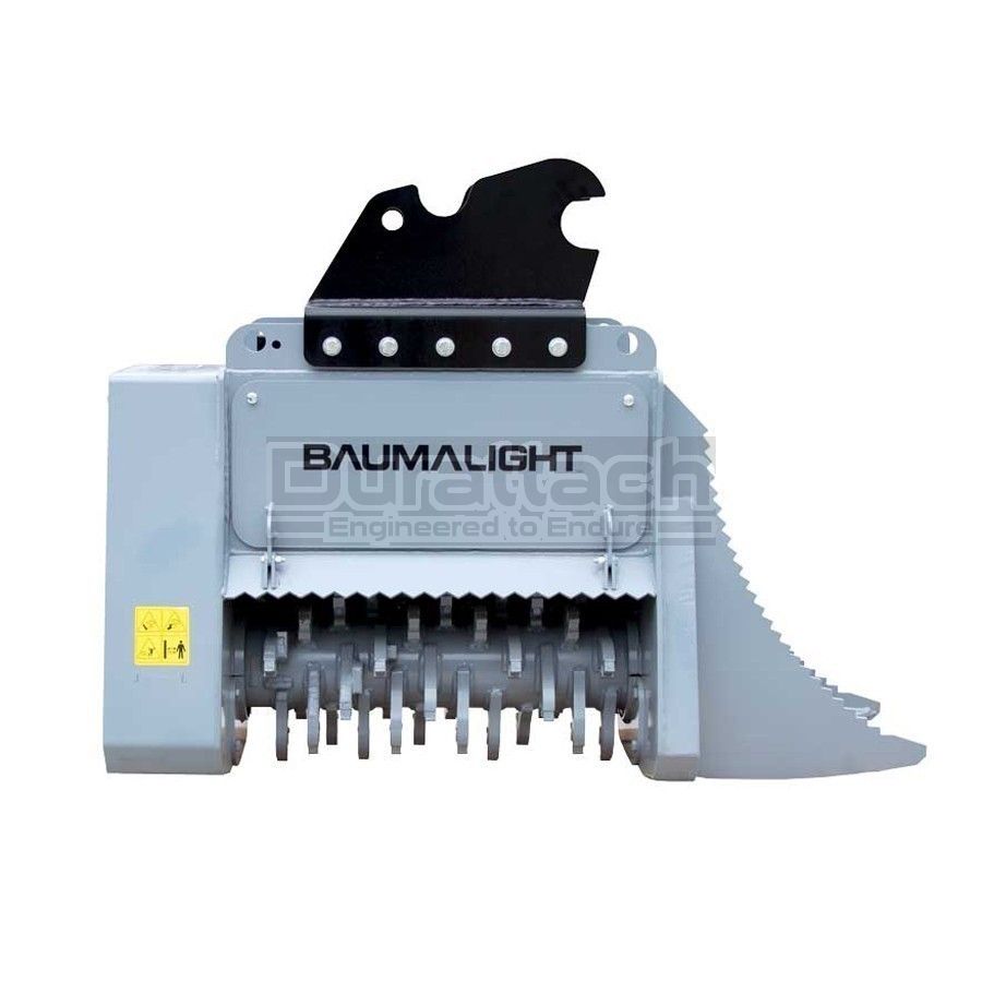 Same as our other 500 series the MX530R is a brush mulcher for excavators and designed to maintain and clear fence lines and entry level contractor work. The difference is the built-in to frame root rake to move logs and other debris out of the path of the excavator or field of work. Same as the other 500 series Baumalight brush mulchers the MX530R is offered with two different type of cutting teeth. The Planer style teeth feed their appetite for brush bit by bit, taking small bites and providing the most efficient mulching and cutting. The Ripper style teeth have more of a shredding mulching action. Their v-shaped design makes them less susceptible to impacts with hard objects like stones, making them the better choice when mulching below grade and in fence lines. See our brush cutting size chart to see what brush size this excavator mounted forestry mulcher can handle.