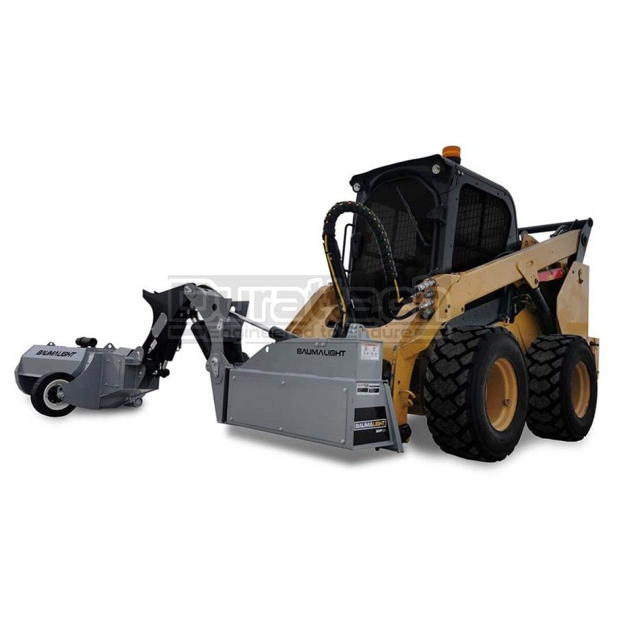 Baumalight’s SWF560 Boom Mower for Skidsteers is a must have attachment for mowing grass and long brush in your ditches, roadsides and fence lines. The SWF560 ditch mower has a 10 ft. reach and the boom and stick design allows the user full control of the desired mowing angle. Designed to work with skidsteers with a minimum carrier weight of 6,000 lbs., the SWF560 is available with several motor options. Make short work of unwanted brush up to 2” in diameter depending on your skidsteer’s GPM. This ditch mower has a full 60” wide mowing head and features our 200 series flail teeth. The head is supported by a durable solid flat-free tire and steel floating deck roller, relieving the weight off the skidsteer. When it’s time to move on to the next project, the boom and stick arm conveniently folds up for safe travel.