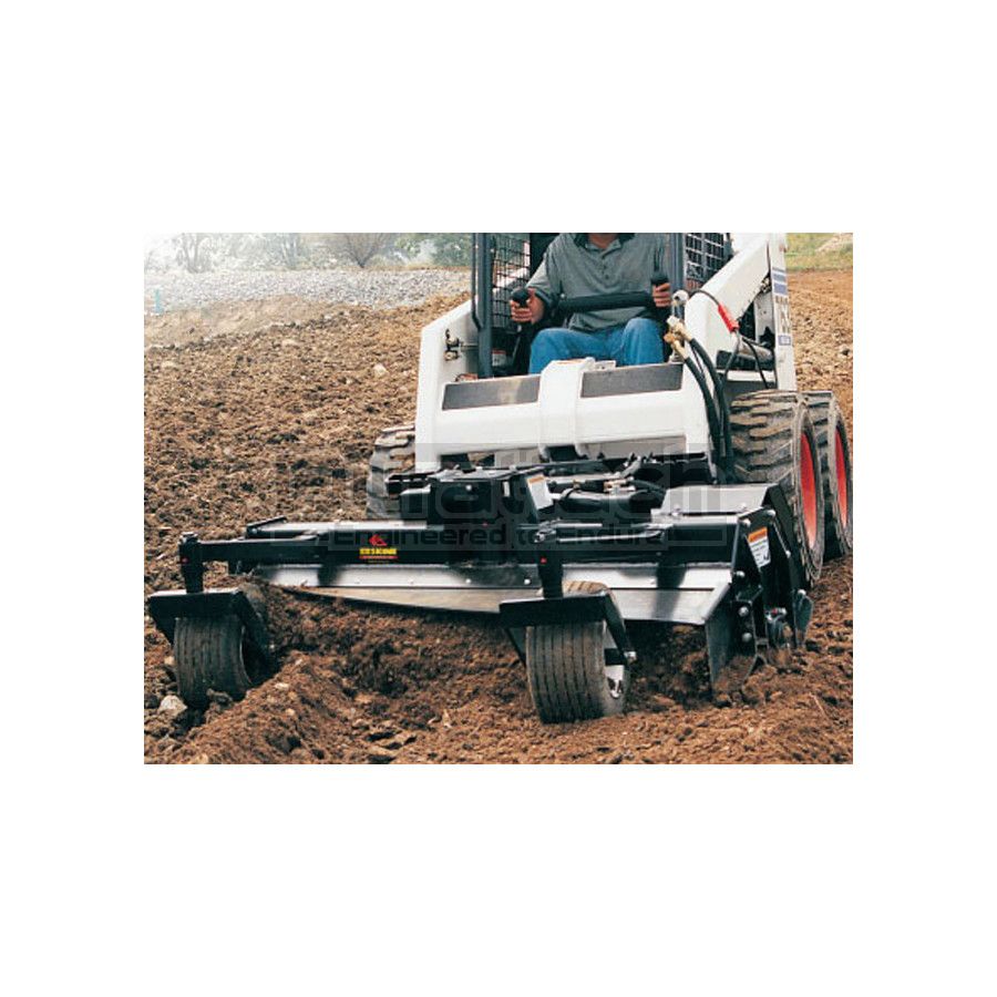 The Erskine Tiller / Leveler / Soil Conditioner is an attachment that pays for itself in a very short amount of time...replacing your hand labor work crew. This versatile unit rakes stones and debris to either side or straight ahead for easy pickup. The aggressive teeth on the large-diameter rotor pulverize soil like an ordinary tiller, with the benefit of faster ground speed. The counter- rotating rotor moves soil ahead of it as it tills, filling in low spots and chewing off high spots. It creates perfect seedbeds and windrows. It separates rocks, tears up sod, and pulverizes dirt clods. We rake and till deeper than any of our competitors - as deep as 4".