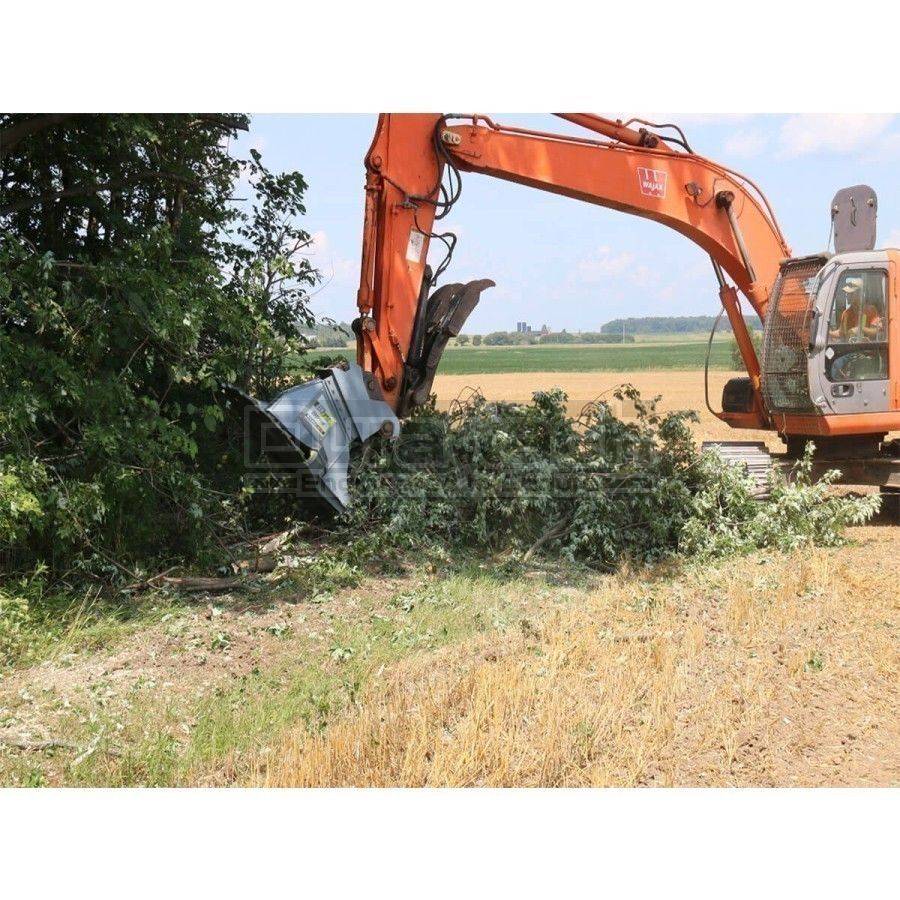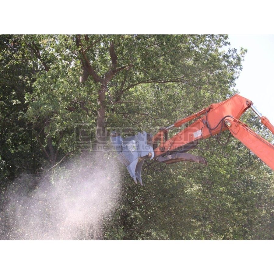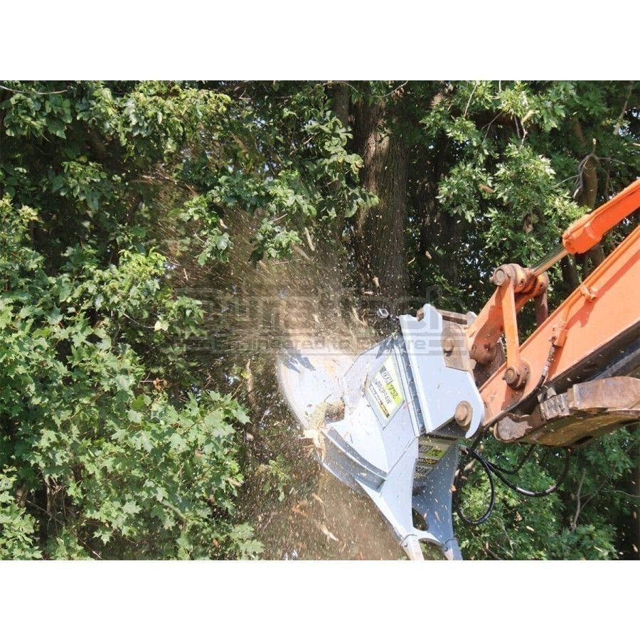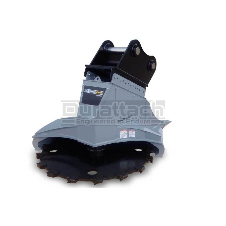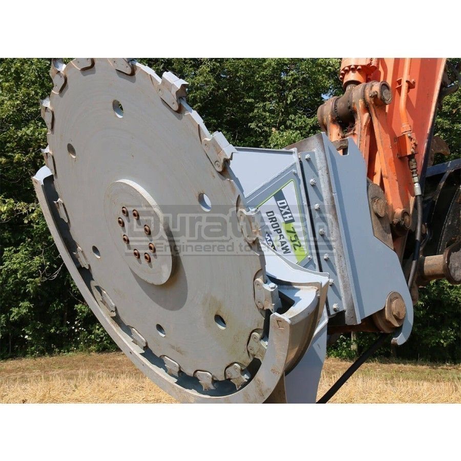 Take your rural property a cut above and tackle overgrown brush and small trees with DropSaw, Baumalight’s hydraulically-driven tree saw. The 52” DXH752 DropSaw model, a large tree saw for excavators is a larger attachment that features heavy-duty construction and replaceable Beaver teeth. It is ideal for high volume commercial cutting, high speed pasture clearing, right-of-way clearing, trimming limbs along fence rows, and cutting downed trees into logs. We offer multiple motor options to match your flow, if you don’t know how much flow your skidsteer has then check out our flow & pressure data base.