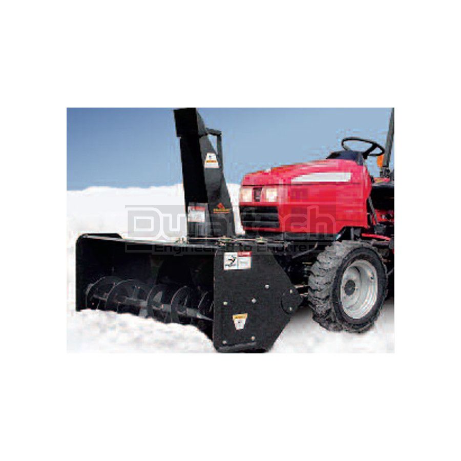 This unit is a true quick attach system--once the initial installation has been done, removal or reattachment is a simple matter that takes about 5-10 minutes. Standard features include hydraulic lift and chute rotation, bolt-on cutting edge, and adjustable skid shoes. These ruggedly built Erskine snowblowers are second to none in features, performance, and durability.