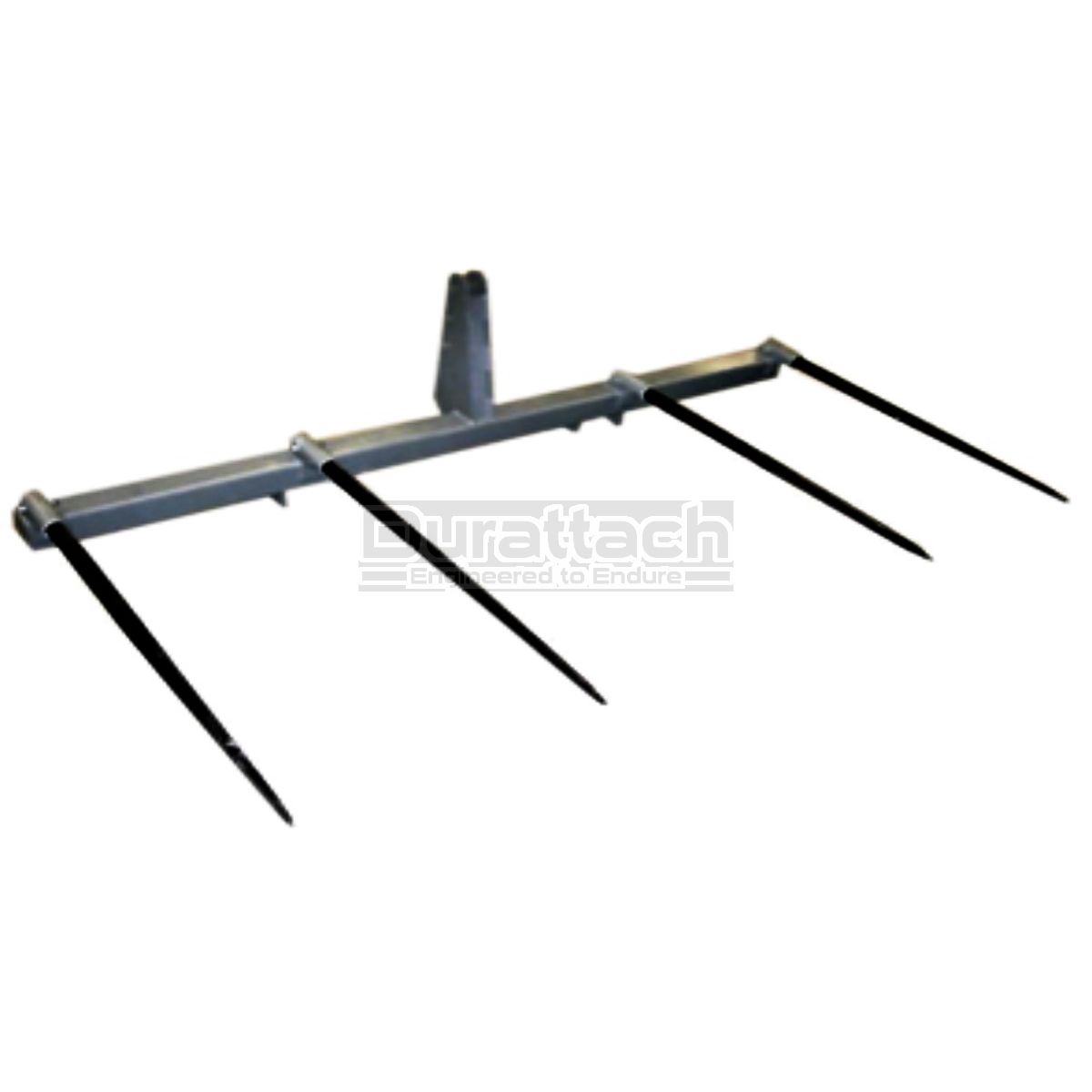 3-pt. Four Spear Bale Handler. Features bolt-in forged spears (42" usable) in cast steel sockets (patent pend). Cat.II & III For two round bales - 4,000 lbs.