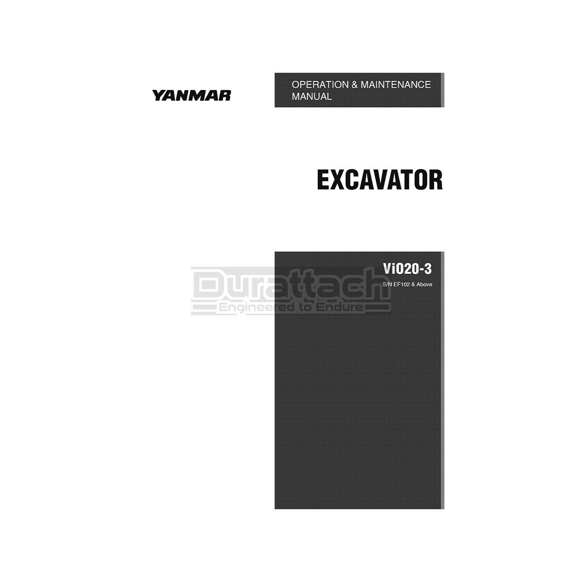 Yanmar Excavator ViO20 Operation Manual - Printed Hard Copy - FREE Shipping